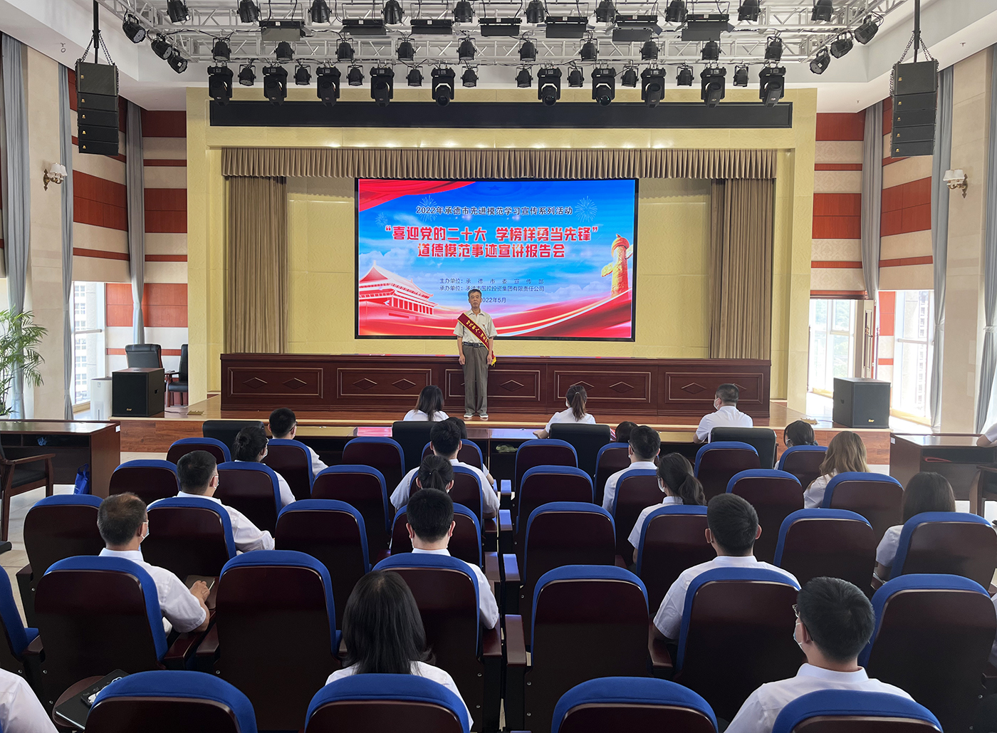 為進(jìn)一步發(fā)揮“新時(shí)代承德榜樣” “道德模范”先進(jìn)典型的示范引領(lǐng)作用,大力弘揚(yáng)塞罕壩精神,全面助力“四個(gè)再建功立業(yè)”,匯聚起公司高質(zhì)量發(fā)展的精神動(dòng)力,喜迎黨的二十大勝利召開,5月27日,由市委宣傳部主辦的“喜迎黨的二十大? 學(xué)榜樣爭(zhēng)當(dāng)先鋒”道德模范事跡宣講報(bào)告會(huì)在國控集團(tuán)成功舉行。